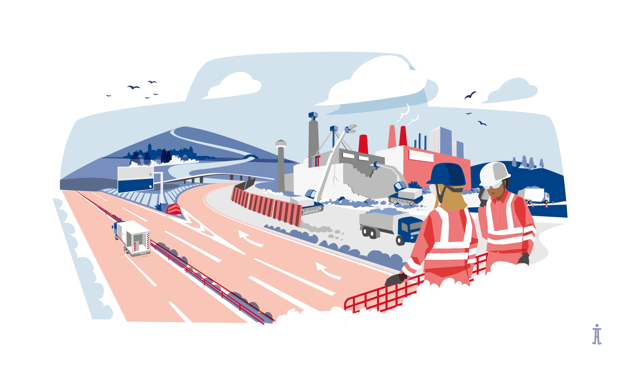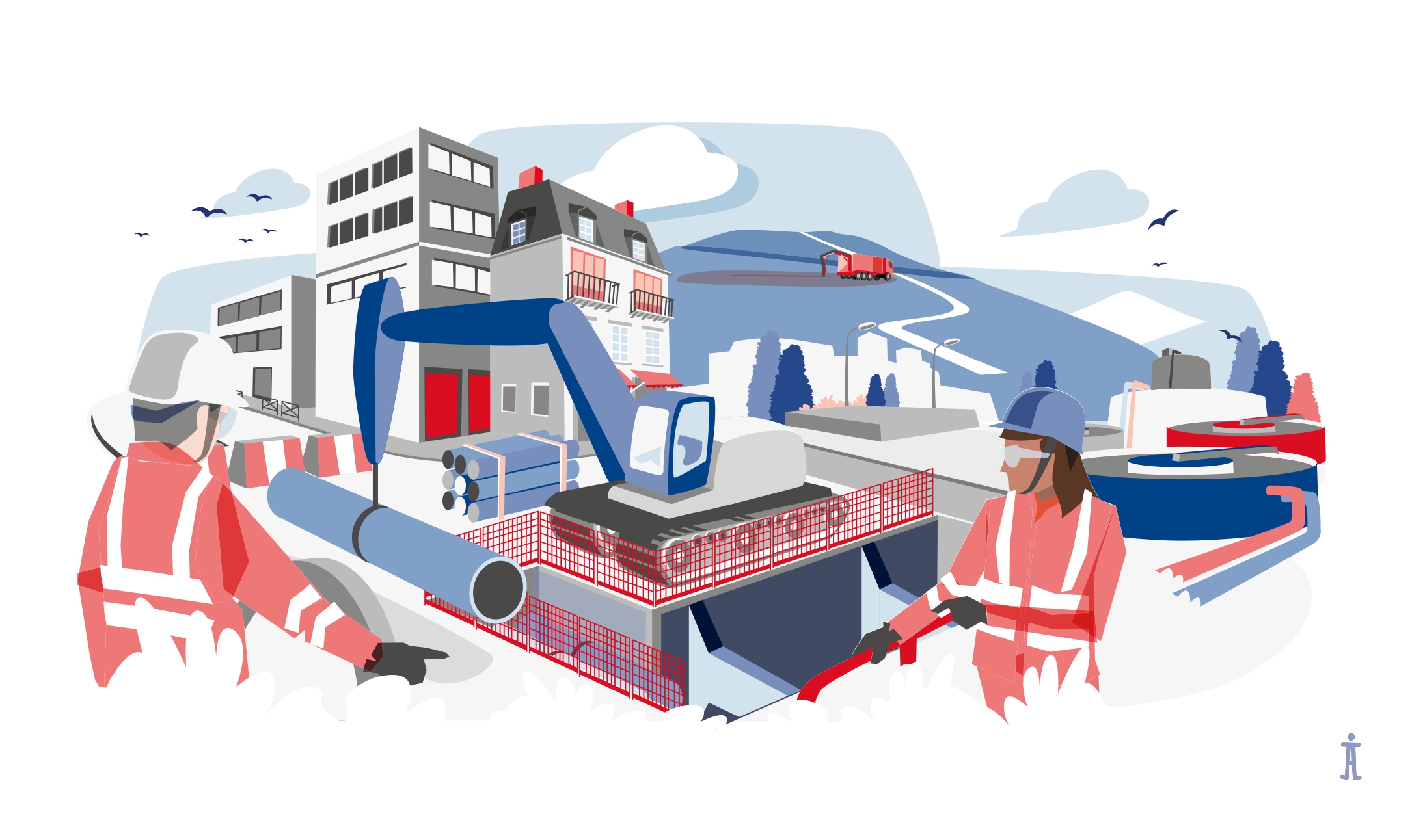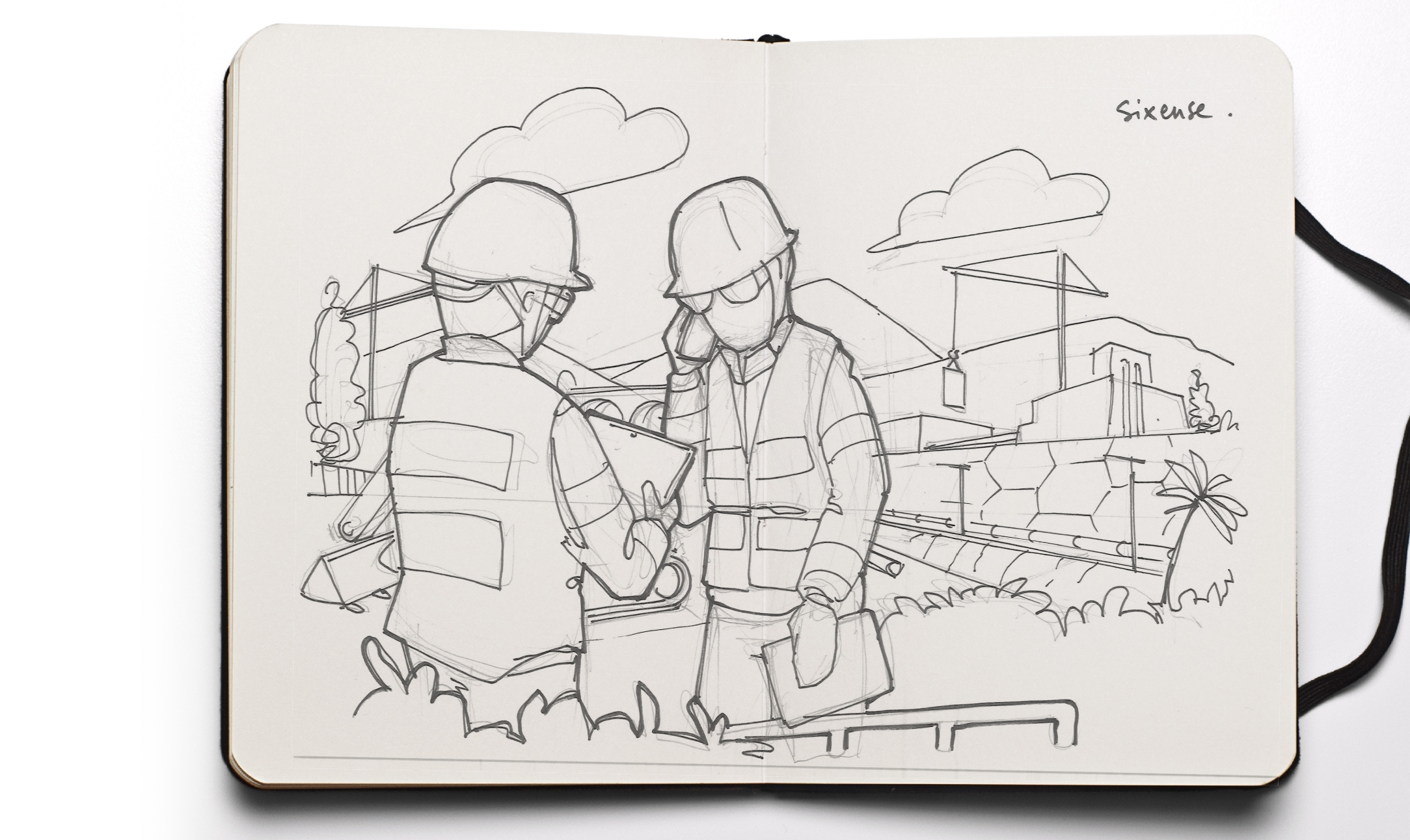 Illustrer chaque domaine, chaque filiale en respectant toutes les contraintes associées à l'activité (sécurité, normes, réglementation...). A chaque illustration, un croquis d'intention a été réalisé pour valider les éléments et leurs positionnements.