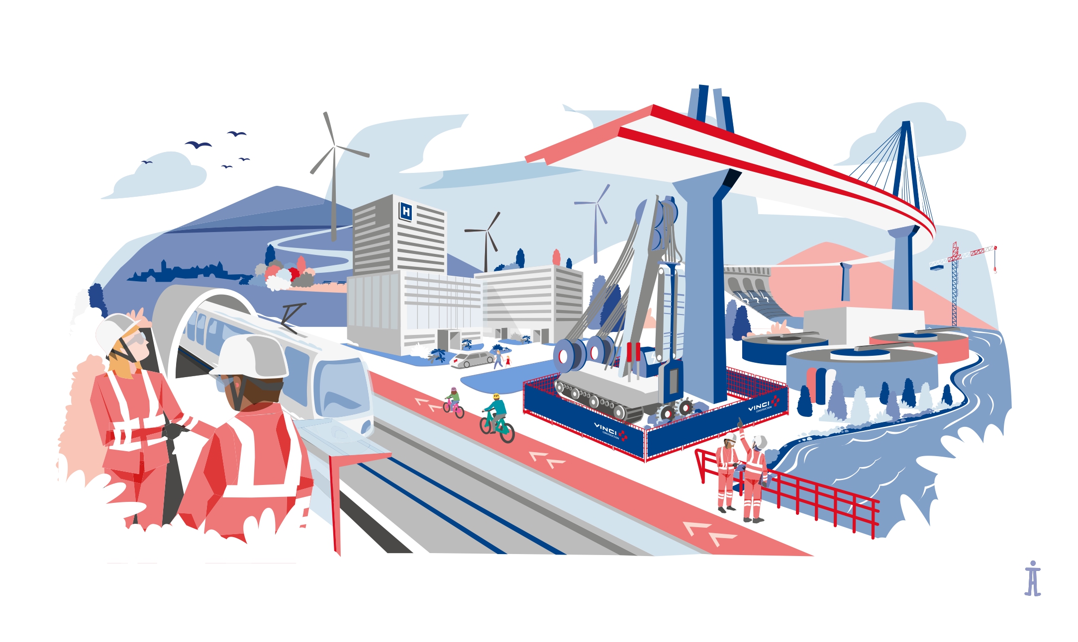Création et réalisation d’illustrations déclinant l’ensemble des activités VINCI pour les vœux 2026.